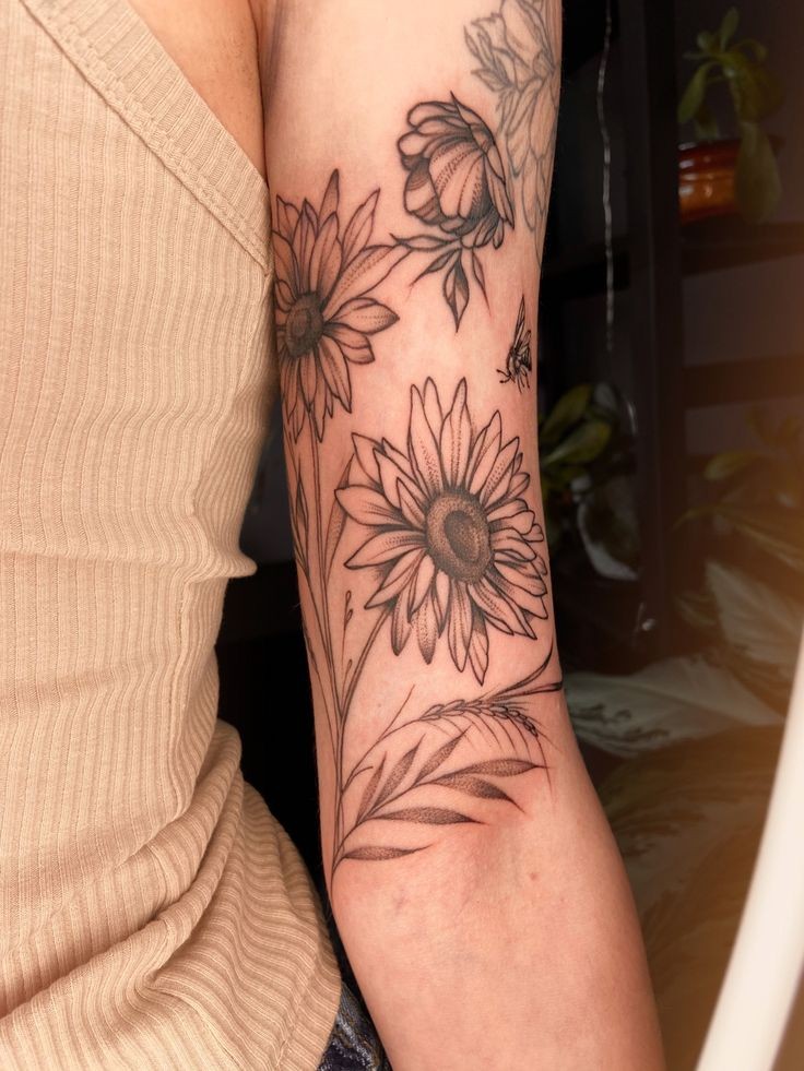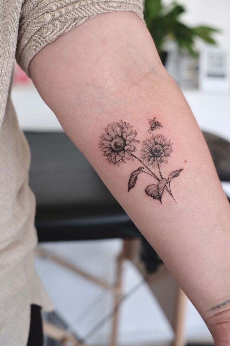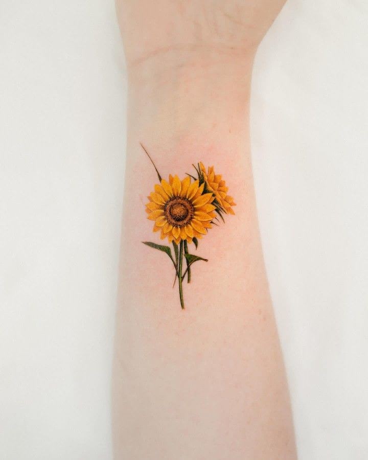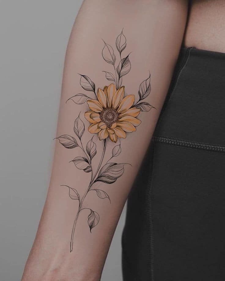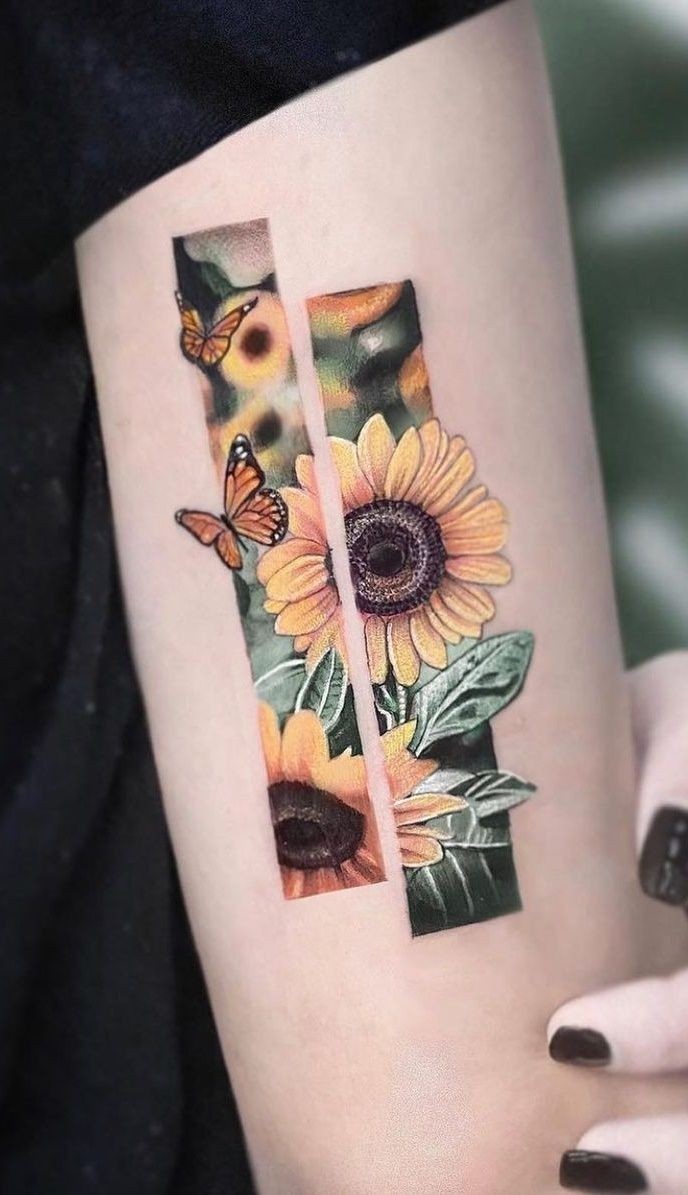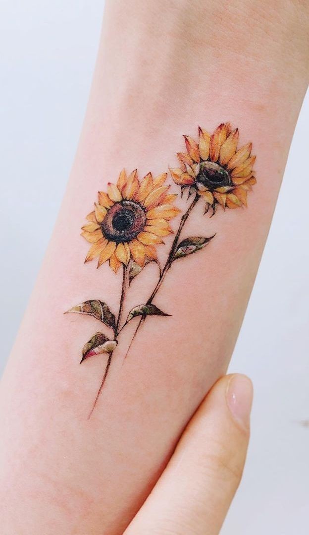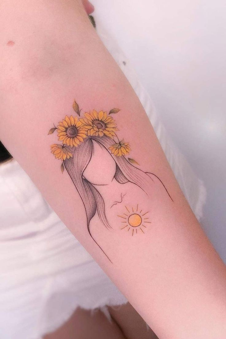 Ideas de tatuajes hermosos en girasoles para mujeres