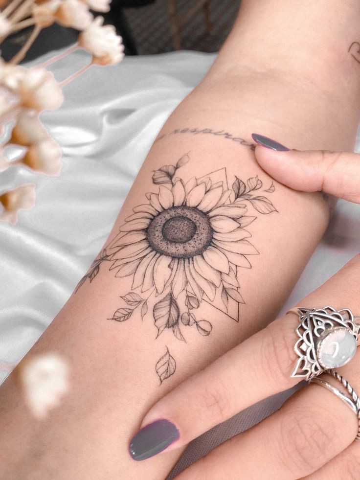 Los tatuajes de girasoles son flores emblemáticas que siguen la trayectoria del sol, simbolizando la búsqueda de la luz y la positividad en la vida. Esta característica única de girar hacia la luz se ha interpretado como una metáfora poderosa para las mujeres, representando su capacidad para encontrar la luz en los momentos oscuros y mantener una actitud positiva incluso en la adversidad.