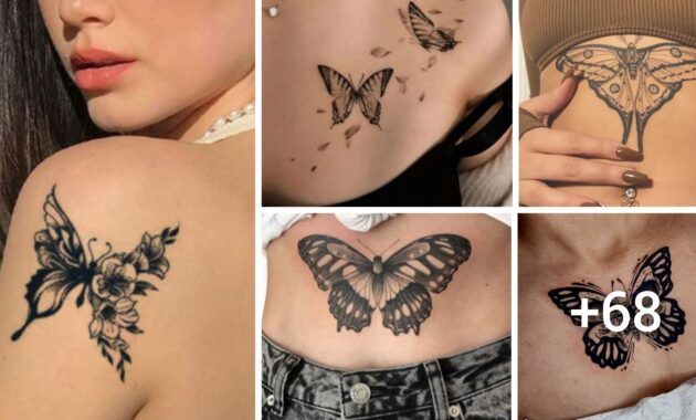 Bellísimas ideas de tatuajes mariposa negra para mujeres.