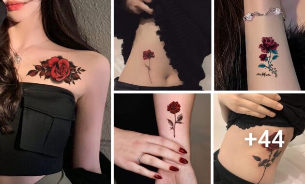 40 ideas de tatuajes Rosas Rojas para mujeres